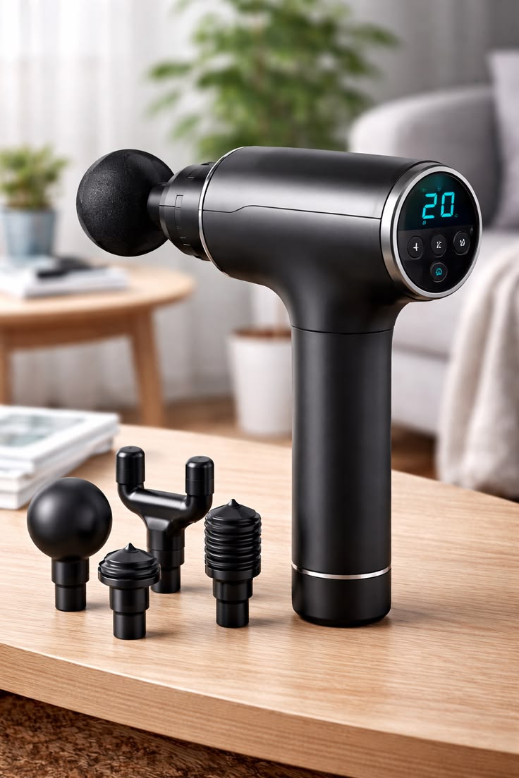 Relieve muscle tension and soreness anytime with the DeepRelief Percussion Massage Gun. Featuring powerful percussion therapy, multiple massage heads, and adjustable speed levels, it delivers deep muscle relaxation for neck, shoulders, back, arms, and legs—at home or on the go.